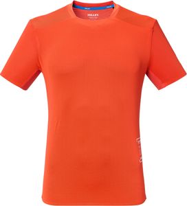 "The Active cut and the very airy material offer unrestricted freedom of movement, while the round collar and short sleeves provide additional comfort. The bonded trims on the collar and sleeve hems add to the lightness and comfort. Particularly noteworthy are the reflective elements, which not only affect the logo but also other details and thus increase your visibility at night."