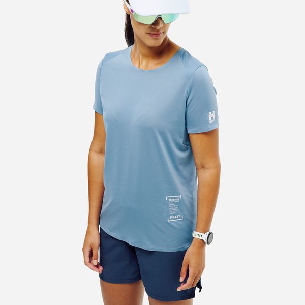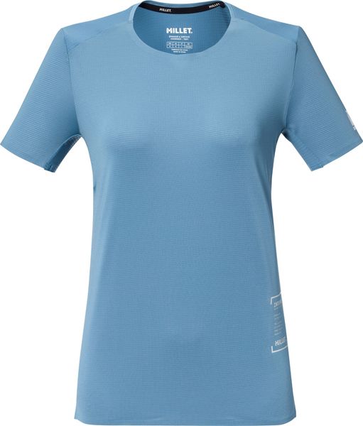"The Active cut and the bonded surfaces ensure an optimal fit and prevent unpleasant friction, especially at the collar and sleeves. The reflective logo and details at the bottom of the T shirt provide additional safety in low light conditions by increasing visibility at night. The exclusive Millet print rounds off the design and gives the T-shirt a feminine yet sporty touch"