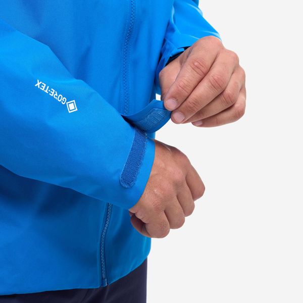 "Highly functional men's jacket for trekking and hiking with GORE-TEX membrane, wind and waterproof, made from recycled polyester."