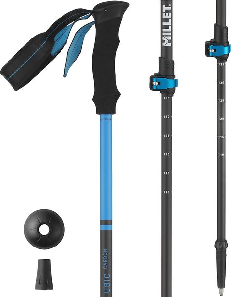 "Experience the perfect balance of lightness and robustness with the Ubic Carbon Pair trekking poles from Millet. These compact and ultra-lightweight socks are made from a combination of carbon fiber and fiberglass cables, making them a reliable companion on long trekking tours and hikes. Thanks to the Speed Lock regulation with metal pockets, you can quickly and easily adjust the lengths of the poles to the respective terrain and your walkingrhythm."