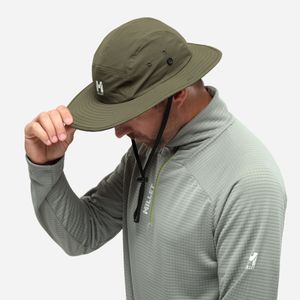 "Lightweight, breathable hat for men with flexible sun protection and sustainable design."