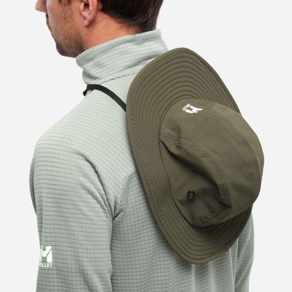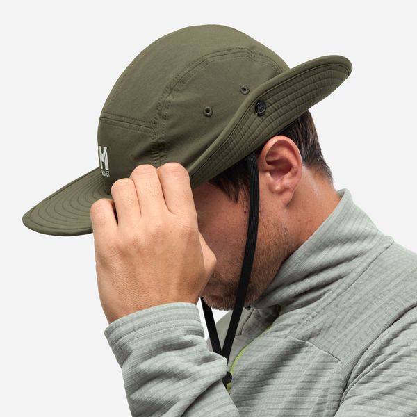 "The Wanaka Hat from Millet is the ideal headwear for active men who value functionalityu00e4t and style. This innovative 5-panel hat combines the features of a hat with those of a cap and offers sophisticated protection from the sun and rain. With a rigid, 8 cm long cap peak at the front and a flexible, 6 cm long peak at the back, it offers optimum protection in changing weather conditions. The side shields, which are 4.3 cm wide, can be folded up with buttons and thus offer additional flexibility and style."