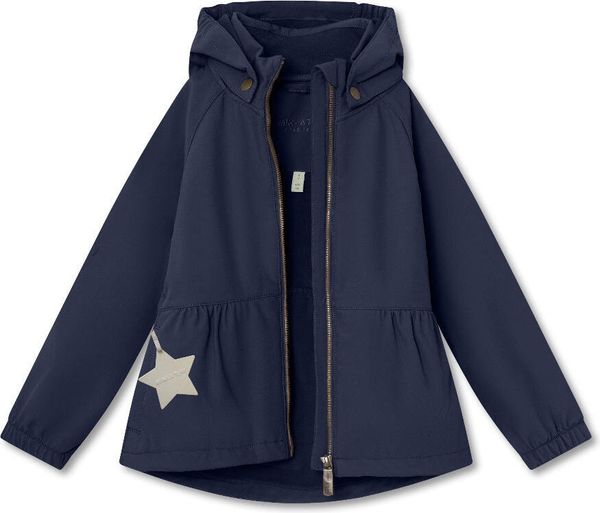 The Matbriddi softshell jacket from MINI A TURE is the ideal choice for girls who want to stay stylish and warm even in colder temperatures. This jacket boasts a feminine shape and elegant pleats at the waist. The detachable hood with practical press studs allows flexibility in changing weather conditions. A special highlight is the reflective MINI A TURE star in the pocket and the small reflective logo on the back, which provide additional safety in the dark. With a reflective power of 70 lux, your child is visible up to 300 meters away.