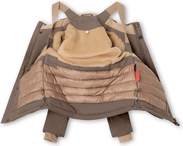 With a detachable hood that has an elasticated wind flap and taped seams, the jacket offers additional protection from the elements. The integrated suspenders ensure a good fit and allow the jacket to be worn comfortably on the shoulders when it gets too warm. Improved cuffs and snow cuffs with thumb opening guarantee freedom of movement and additional protection against snow and cold.