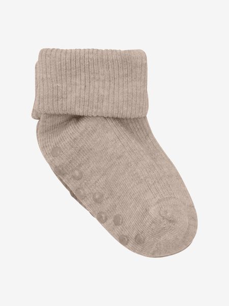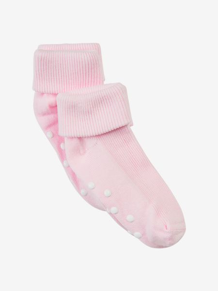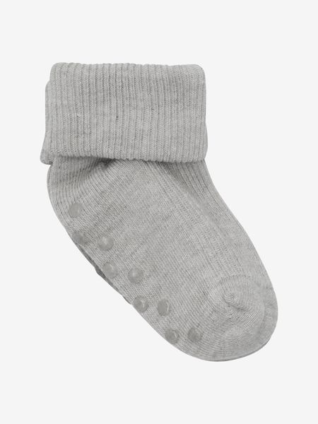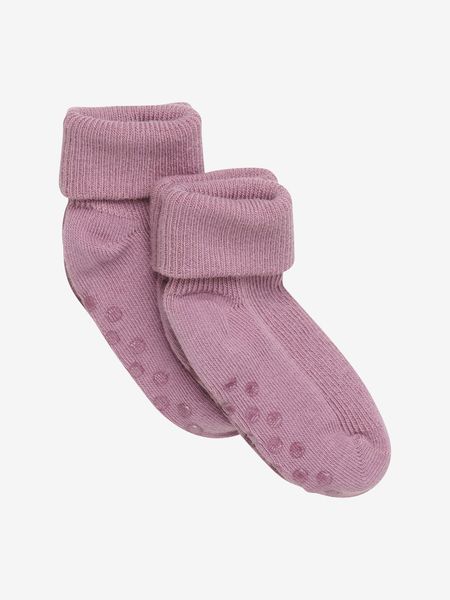"Discover the perfect companion for your child's little feet with these non-slip baby socks in a practical 2-pack. These high-quality socks from Minymo are equipped with rubber dots under the foot to ensure a secure grip and prevent slipping. The folded ribs on the upper edge guarantee that the socks stay on reliably without slipping."