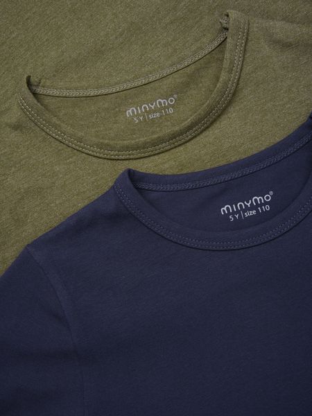 "Discover the versatility and comfort of the Basic 32 TShirts in a practical 2-pack from Minymo. These Tshirts are specially designed for boys and offer an excellent fit that allows for numerous stylingoptions. Made from a durable cotton fabric, they are super soft and comfortable to wear all day long. The elastic properties of the Tshirts ensure additional freedom of movement and comfort, ideal for active days"
