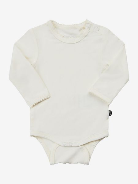 "Discover the adorable monochrome bodysuits from Minymo, which are perfect for both boys and girls. These bodysuits are characterized by a simple but stylish design, which is complemented by decorative lace seams on the neck and wrists of the girls' bodysuits. The press studs on the left shoulder and between the legs are particularly practical and make dressing and undressing easier, simplifying everyday life for parents and children alike."