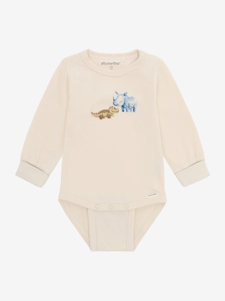 "The long-sleeved bodysuit from Minymo is the perfect choice for little boys who value comfort and style in equal measure. The plain-colored bodysuit features a charming print on the chest, giving it a playful character. The practical press stud fasteners between the legs make it easy to put on and take off and are attached in two different places to grow with the child and ensure longer use."