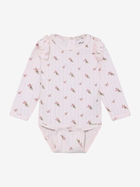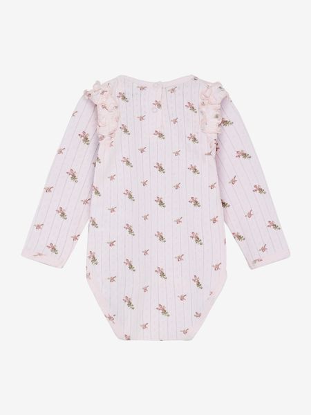 "This long-sleeved bodysuit by Minymo features a charming all-over print and playful ruffles on the shoulders that will add a special touch to any outfit. This bodysuit is specially designed for girls and not only looks adorable thanks to the poppers between the legs, but is also practical to put on and take off."