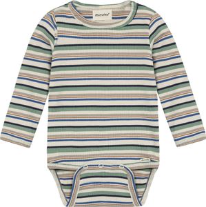 "The long-sleeved bodysuit from Minymo is a must-have for little boys. With its stylish all-over striped print and soft ribbed material, it not only offers a modern look, but also maximum comfort. The bodysuit is made from a high-quality cotton blend that is gentle on children's sensitive skin while remaining durable. Practical poppers in the crotch make it easier to put on and take off and change diapers"