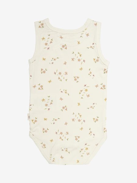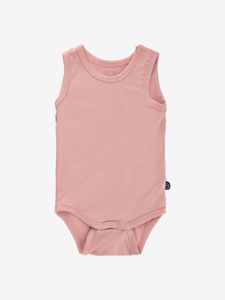 "Sleeveless children's bodysuit made of soft, antibacterial bamboo viscose with practical poppers for easy dressing and undressing."
