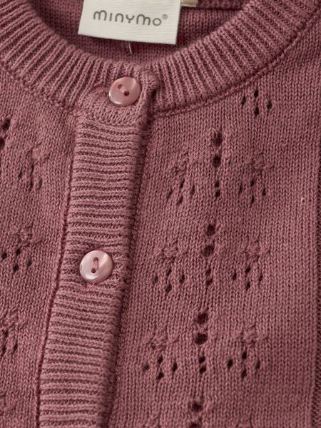 "Discover the perfect blend of functionality and timeless design with the knitted cardigan from Minymo. This stylish cardigan knit is ideal for anyone who values comfort and style. The front of the cardigan features buttons that not only provide a classic look, but also practical functionality for easy dressing and undressing. The high-quality knitted material ensures warmth and comfort, while the cardigan remains breathable to ensure maximum comfort. Whether you prefer a casual or elegant look, this cardigan adapts to any style of clothing and will quickly become an indispensable part of your wardrobe."