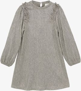 "This enchanting long sleeve dress from Minymo is an absolute highlight for any closet. It stands out with its elegant ruffles on the shoulders, which give the dress a playful yet stylish touch. Made from a shimmering fabric, it attracts everyone's attention and creates a glamorous look. The elasticated cuffs not only offer a high level of comfort, but also a perfect fit that stays on all day long. Whether for festive occasions or as a fashion statement in everyday life, this dress is versatile and adds a touch of elegance to any wardrobe."