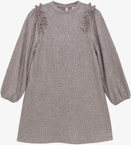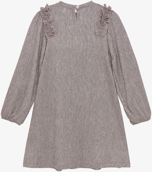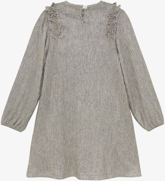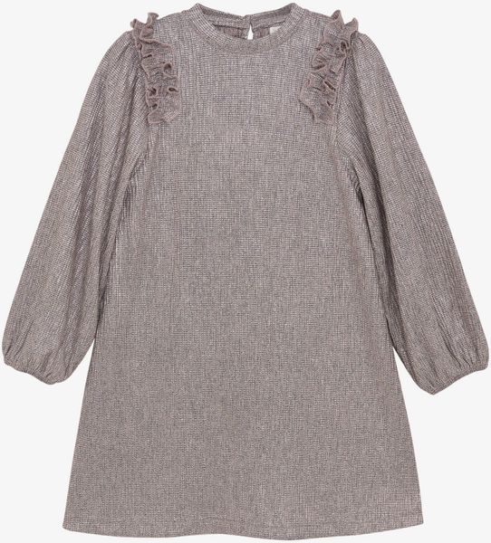 "This enchanting long sleeve dress from Minymo is an absolute highlight for any closet. It stands out with its elegant ruffles on the shoulders, which give the dress a playful yet stylish touch. Made from a shimmering fabric, it attracts everyone's attention and creates a glamorous look. The elasticated cuffs not only offer a high level of comfort, but also a perfect fit that stays on all day long. Whether for festive occasions or as a fashion statement in everyday life, this dress is versatile and adds a touch of elegance to any wardrobe."