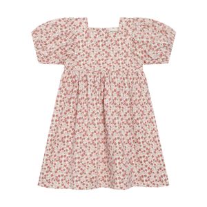 "The enchanting Dress SS AOP dress from Minymo is the perfect choice for style-conscious girls. Made from high-quality, certified organic cotton, it is not only comfortable to wear, but also a sustainable option for eco-conscious parents. The all-over print gives the dress a fresh and playful touch, which is stylishly complemented by the square neckline and charming puffed sleeves."