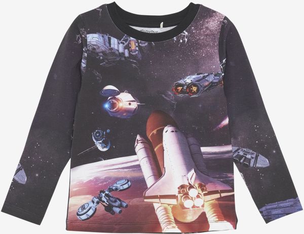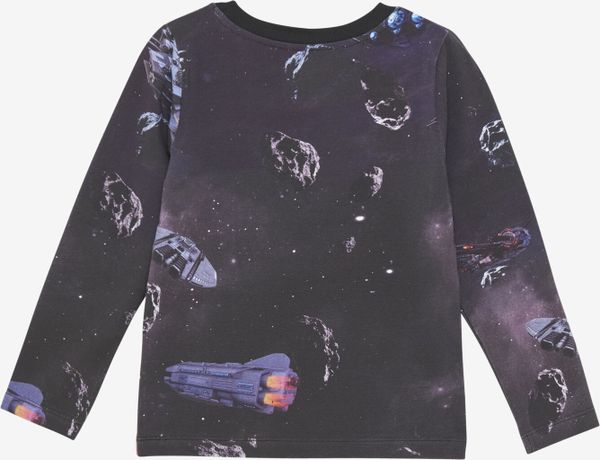 "Long sleeve shirt with space print, GOTS-certified for little explorers."