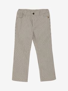"Comfortable, striped twill trousers for boys, stretchy and certified eco-friendly."