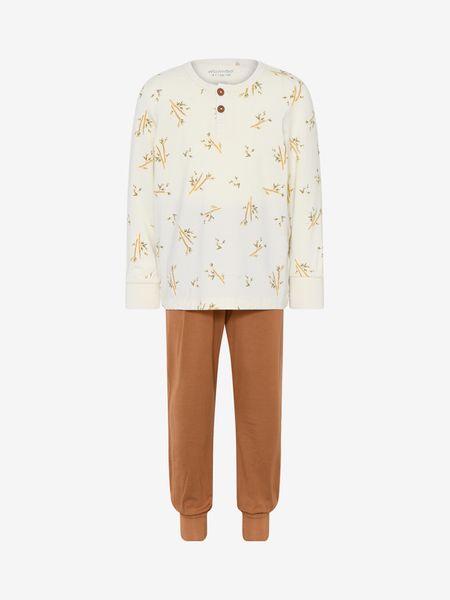 "This cool pyjama set for boys from Minymo not only offers ultimate comfort, but also functionality. Made from the softest bamboo viscose, it offers excellent temperature regulation, making it ideal for all seasons. Bamboo, a natural material, is known for its soft, comfortable texture and antibacterial properties, which ensure a healthy sleeping environment. This set is perfect for little adventurers who want to look stylish while they sleep."