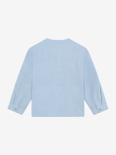 "Long-sleeved cotton shirt for boys with a breast pocket and roll-up sleeves for versatile style."