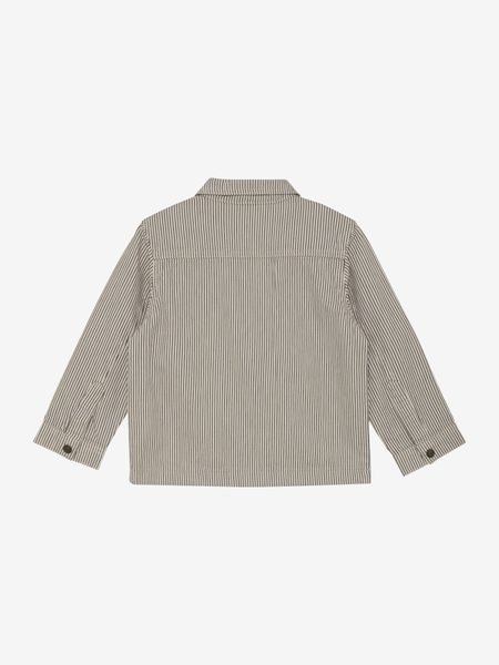 "This striped top from Minymo is a stylish and practical piece of clothing for boys. Made from high-quality twill, it not only offers a fashionable look, but also durability and comfort. The zipper at the front makes it easy to put on and take off, while the front pockets offer additional storage space and round off the design. The classic collar gives the shirt an elegant touch that makes it versatile, whether for everyday wear or special occasions."