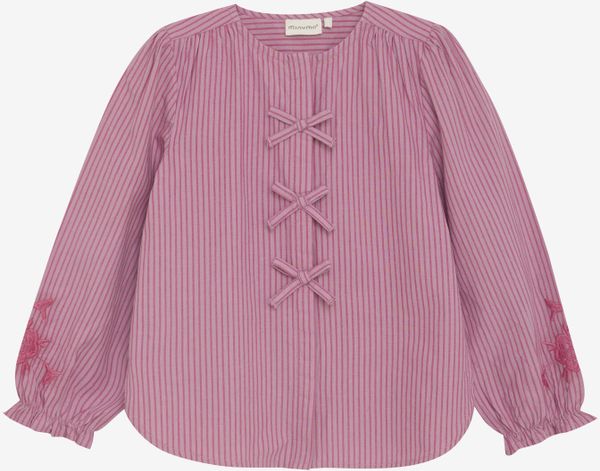 "This stylish striped shirt from Minymo is a real eye-catcher and combines classic design with modern accents. The elegant balloon sleeves give the shirt a special charm and the elasticated cuffs ensure a comfortable fit. Particularly noteworthy are the concealed buttons along the button placket, which ensure a sleek and elegant look."