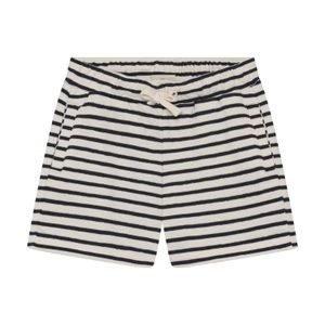 "These striped shorts from Minymo are the perfect choice for active boys who value comfort and style. Made from 100% certified organic cotton, they are comfortable to wear and gentle on the skin. The adjustable drawstring at the waist ensures an individual fit, while the practical pockets provide additional storage space for small items. The shorts are GOTS - organic CERES-0366 certified, which guarantees the highest ecological and social standards in production. With their fresh design and high-quality wool, they are ideal for warm days and can be combined in a variety of ways."