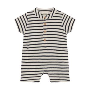 "High-quality one-piece for boys made of 100% organic cotton with a striped print and practical details. Ideal for warm days."