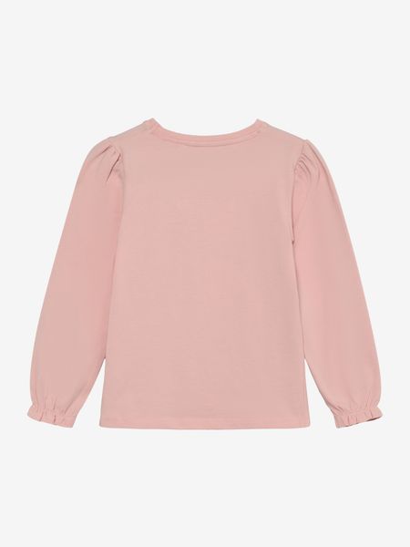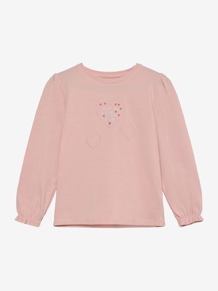 "Long-sleeved girls' T-shirt with a heart print, puffed sleeves and soft ribbed cuffs made of 100% cotton."