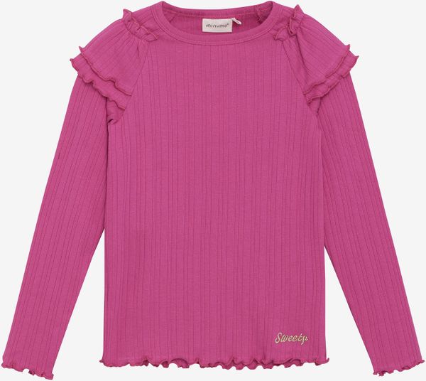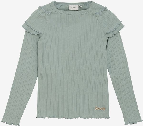 "The long sleeve-T shirt made of ribbed fabric by Minymo combines comfort and style in an enchanting design that is ideal for everyday wear. The fine ribbed details on the shoulders give the T-shirt a playful touch that sets it apart from similar basics. The soft ribbed fabric is comfortable to wear and adapts perfectly to the shape of the body without constricting"