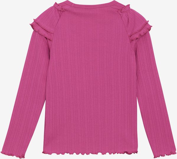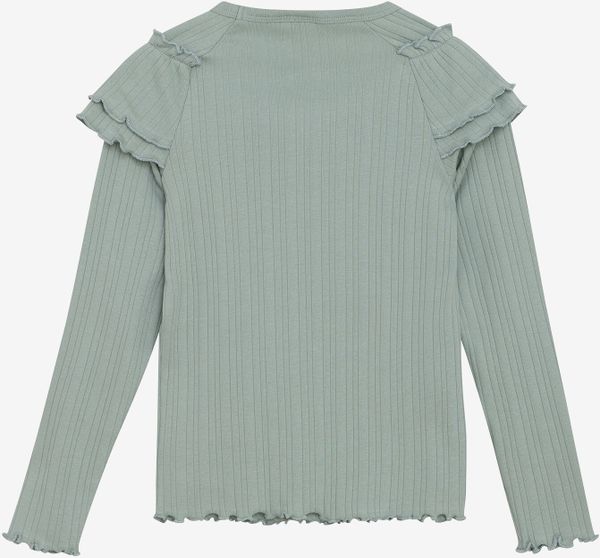 "Long-sleeved T-shirt with ruffle details and comfortable ribbed fabric for stylish and comfortable everyday looks."