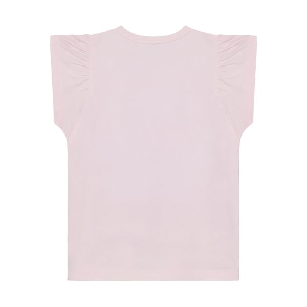 "Fashionable cotton T-shirt with a print on the front and feminine shoulder pleats for style-conscious girls."