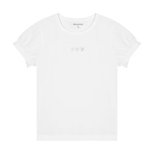 "Stylish and comfortable cotton girls' T-shirt with puffed shoulders and a back hem."