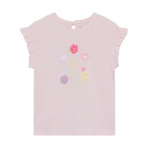 "The Tshirt from Minymo is the perfect addition to little girls' wardrobes. Made of high-quality cotton, it is comfortable to wear and ideal for sensitive children's skin. The plain-colored design is complemented by a playful front print that gives the T-shirt a special charm. The ruffled edge on the sleeves adds a fashionable detail and makes it a real eye-catcher. Whether for everyday wear or special occasions, this T-shirt can be combined in a variety of ways and will add color and fun to your closet."