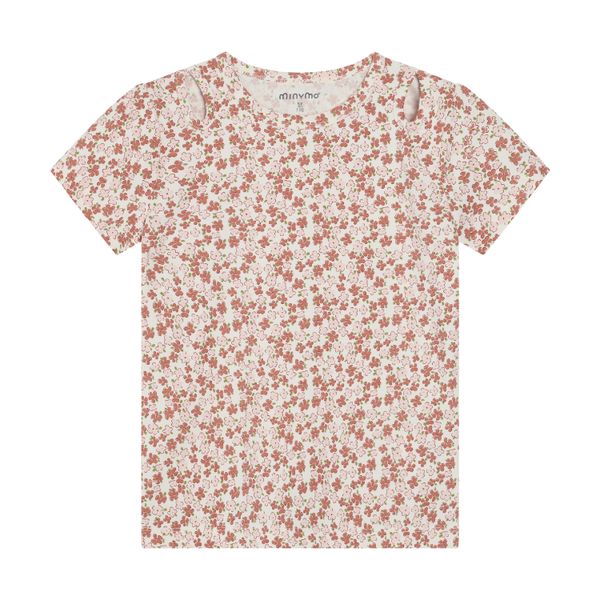 "Discover the enchanting T-shirt from Minymo, specially designed for girls. This stylish top features a playful all-over print that will add a touch of vibrancy to any outfit. The light puffed sleeves and decorative cut-outs above the shoulders add a fashionable accent and make this T-shirt a real eye-catcher."