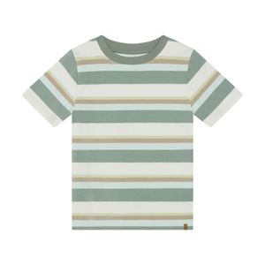 "Stylish and sustainable T-shirt for boys made of certified organic cotton with stripes and a round neckline."