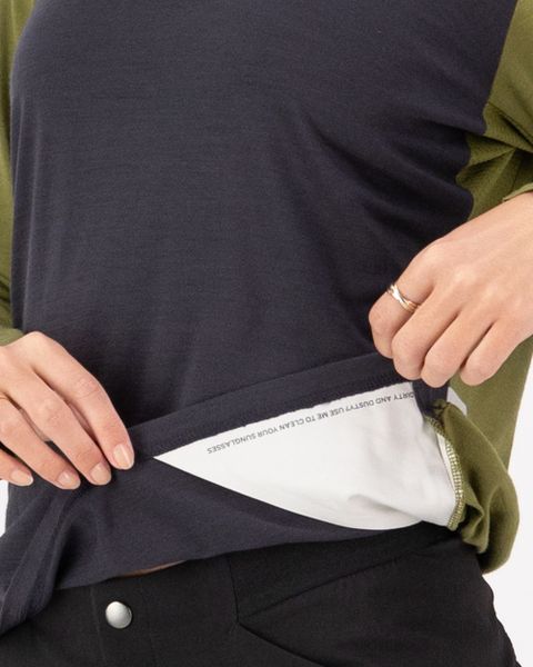 "The onbike fit of the jersey is specially designed to move with you. An extended hem and side slits offer additional comfort and freedom of movement. The breathable mesh inserts under the arms ensure optimum ventilation, preventing unpleasant perspiration and guaranteeing a fresh feel. Another practical detail is the hidden sunglasseswipe, which helps you to keep a clear view even in muddy conditions"