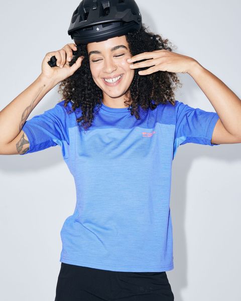"Functional women's bike jersey made from merino wool that regulates temperature, wicks away moisture and inhibits odor."