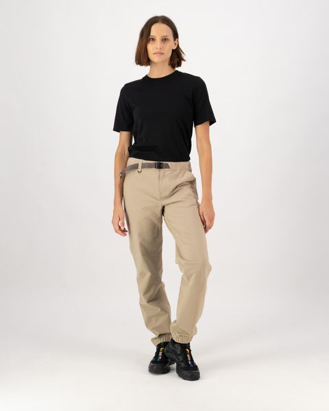 "The Escapade Pants from Mons Royale are the perfect companion for all your outdooradventures. These pants combine functionality with an excellent fit and offer optimal freedom of movement thanks to the articulation around the knees. Made from durable ripstop material with horizontal stretch, they are robust yet flexible, making them an essential part of your everyday wardrobe. The blend of organic cotton and merino wool ensures an ideal balance between durability and comfort and makes the trousers particularly comfortable to wear."