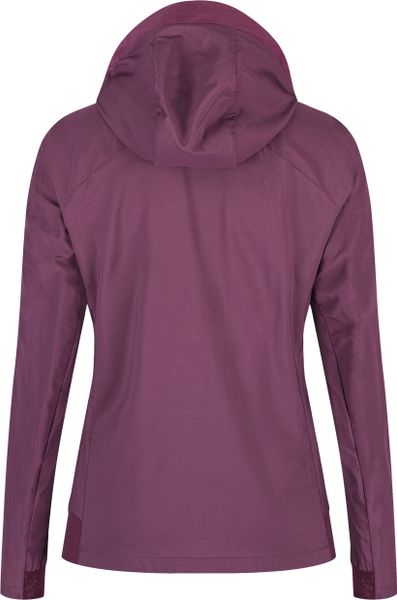 "Lightweight, breathable women's jacket with hood, ideal for outdoor activities, offers protection and freedom of movement."