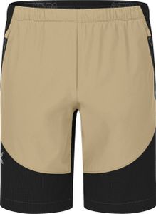 "The regular fit cut and the closed, elastic waistband with drawstring ensure a snug fit and high wearing comfort without being too restrictive. Practical side pockets with zippers offer plenty of storage space for important items such as keys, wallets or cell phones that need to be kept safe. The robust knee panels made of tear- and abrasion-resistant nylon-polyester with ripstopreinforcement make the shorts particularly resistant to holes and abrasion, ideal for demanding hikes or climbing tours"