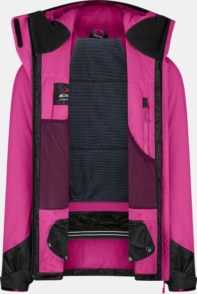 "Women's ski jacket with recycled material, waterproof, breathable and ideal for winter sports."