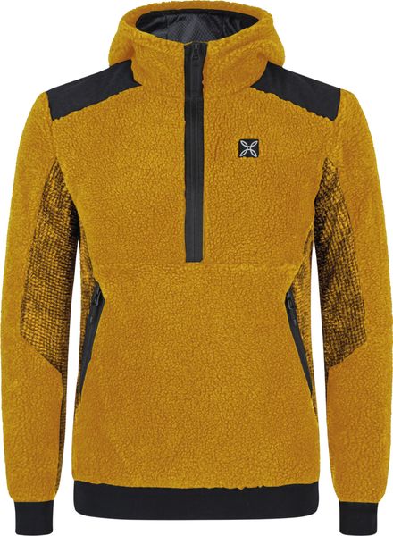 The Nomad 2 Maglia Hoody for men by Montura offers breathable and insulated comfort for cold days outdoors. Made from recycled synthetic material that is modeled on lambswool in terms of insulation and comfort, this hooded jacket remains breathable even when temperatures rise. The Global Recycled Standard-certified material is easy-care and designed for gentle washing, which also protects the environment. The Polartec® High Loft® insulation provides extra warmth and compresses well, making the anorak easy to stow.