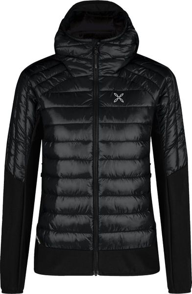 "The Peak Hybrid Hooded Jacket WOM by Montura is the ideal companion for women who want to feel comfortable on ski tours and alpine adventures in cold, changeable weather. This innovative jacket combines the benefits of synthetic down with breathable and windproof Pertex Quantumu00u00ae nylon fabric, which is also protected by a water-repellent DWRcoating. Thanks to the use of recycled material, the jacket not only contributes to your comfort, but also to environmental protection"