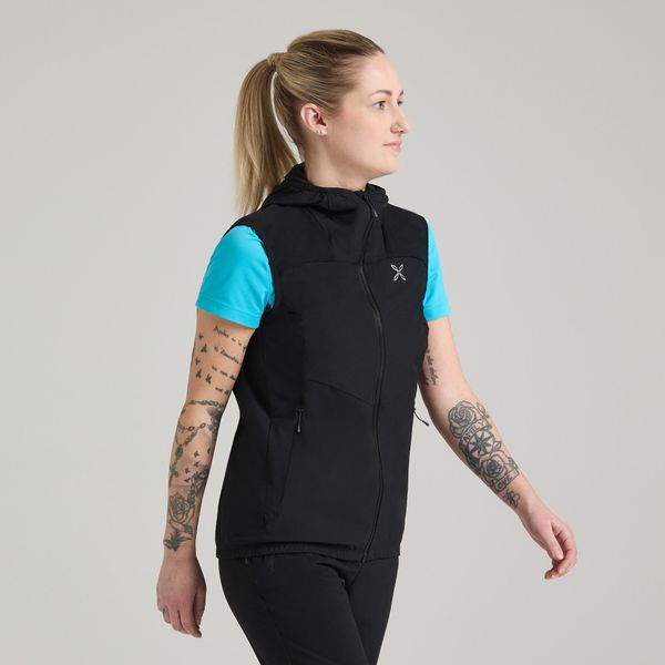 "The Rise Hooded Vest Woman by Montura is the perfect choice for active women who value functionality and style. This women's vest is made from a lightweight, breathable nylon fabric that not only offers excellent protection from the wind, but also supports the natural perspiration of the skin. This keeps your body at the optimum temperature at all times, even during intensive fitnessand training sessions. Thanks to the PFAS-free, water-repellent impregnation, you are also protected from light rain showers."
