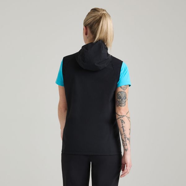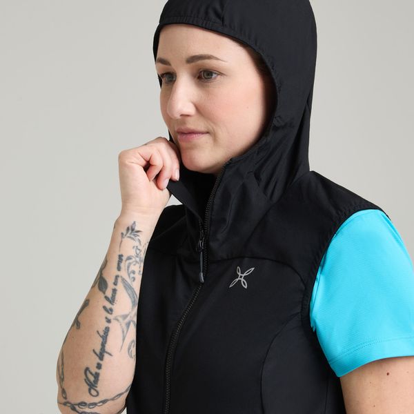 "Lightweight, breathable women's vest with hood, ideal for fitness, leisure and protection from wind and light rain."