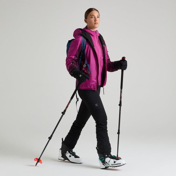 "The Skisky 2.0 Jacket for women by Montura is the perfect companion for anyone looking for adventures in the snow. This jacket, made from the high-quality 2-layer Pro-Meteo + material, combines lightness, breathability and excellent protection from the elements. With an impressive wateru00e4ule of 15000, it offers optimum protection for activities such as freeskiing, skiing, ski touring, mountaineering and alpine touring. Thanks to their windproof and water-repellent properties, you can concentrate fully on your next descent."