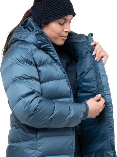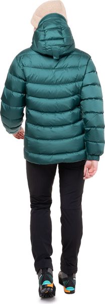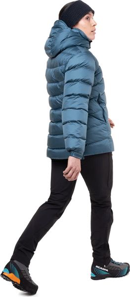 "Lightweight, technical down jacket for female alpinists with excellent thermal insulation and protection in extreme conditions."