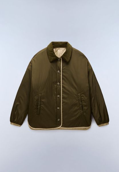 "The Napapijri A-secret W is the perfect choice for style-conscious women who don't want to miss out on fashionable accents even on cooler days. This reversible jacket offers two exciting looks in one: one side is elegantly quilted, while the other side is kept simple and modern. The pointed collar made of corduroy and the button placket give the jacket a unique shirt-like style that can be worn both casually and smartly."