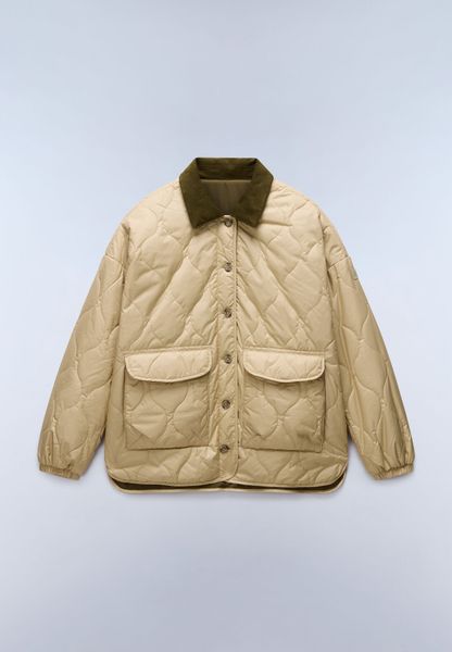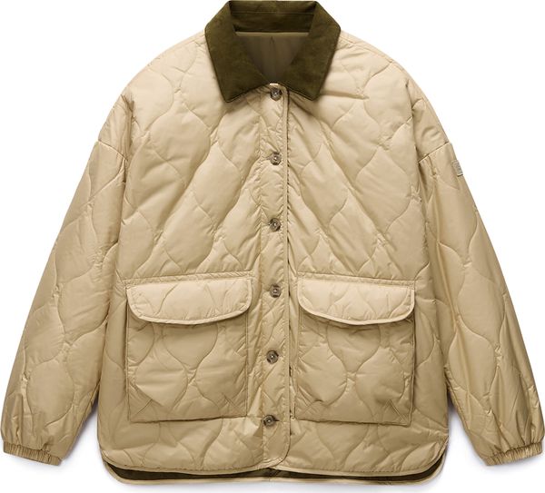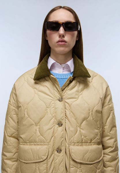 "Stylish, reversible women's jacket with corduroy collar, quilted and warmly padded made from sustainable materials."