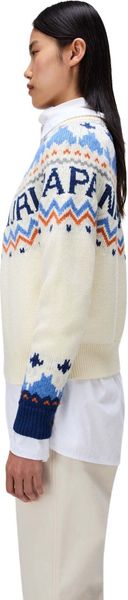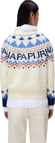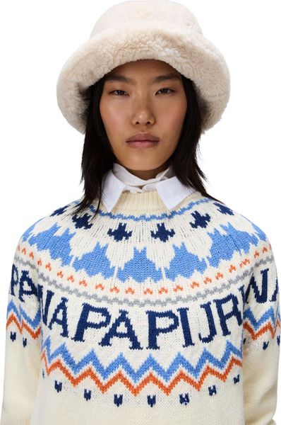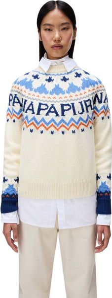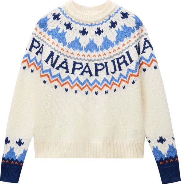 "The Fiames sweater from Napapijri is the perfect combination of traditional outdoor charm and modern style. The jacquardknit technique gives it an impressive texture and visual depth that makes it a real eye-catcher. With a material blend of 70% wool and 30% polyester, this sweater not only offers natural warmth, but also increased durability, making it particularly long-lasting."